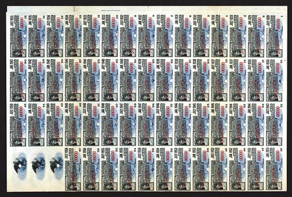 Texas, 1928, $1000, Specimen 6% 30 year adjustment Mortgage Gold Bond, Blue border with locomotive vignette, Coupons attached, POC's, XF, ABNC. Unlisted date in Cox.