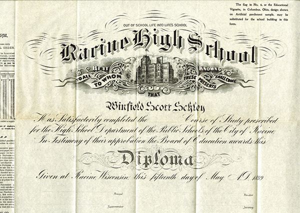 Iowa. Sales sheet and prices for Diploma Form Style #4. Featuring Racine High School 1899. On very fragile paper, folded.