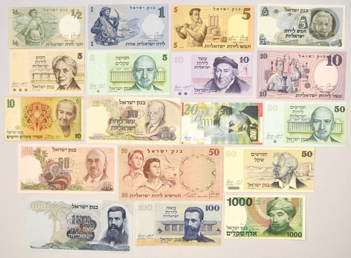 Israel......., 1958-2008. Lot of 18 Issued Banknotes, Includes: 1958, 1/2 Lira, P-29a, JEZ; 1 Lira, P-30, JEZ; 5 Lirot, Pick-31a, TDLR; 10 Lirot, P-32a, TDLR; 1960, 50 Lirot, P-33d, JEZ; 1968, 5 Lirot, P-34b, JEZ; 10 Lirot, P-35c, JEZ; 50 Lirot, P-36b, JEZ; 100 Lirot, P-37d, JEZ; 1973, 5 Lirot, P-38, JEZ; 10 Lirot, P-39a, JEZ; 50 Lirot, P-40, JEZ; 100 Lirot, P-41, JEZ; 1978, 5 Sheqalim, P-44, JEZ; 1978 (1980), 50 Sheqalim, P-46a, JEZ; 1983, 1000 Sheqalim, P-49b, JEZ; 1985, 10 New Sheqalim, P-53a, JEZ; 2008. 20 New Sheqalim, P-63. Notes range from VF to UNC condition. (18). Sold "AS IS" no returns accepted.