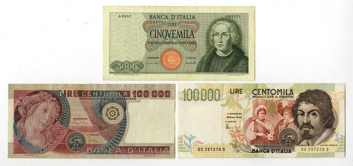 Italy, 1964-94. Lot of 3 Issued Banknotes, Includes: 1964, 5000 Lire, P-98a; 1978, 100,000 Lire, P-108a; 1994, 100,000 Lire, P-117a. Notes range from VF to Choice VF condition. (3). Sold "AS IS" no returns accepted.