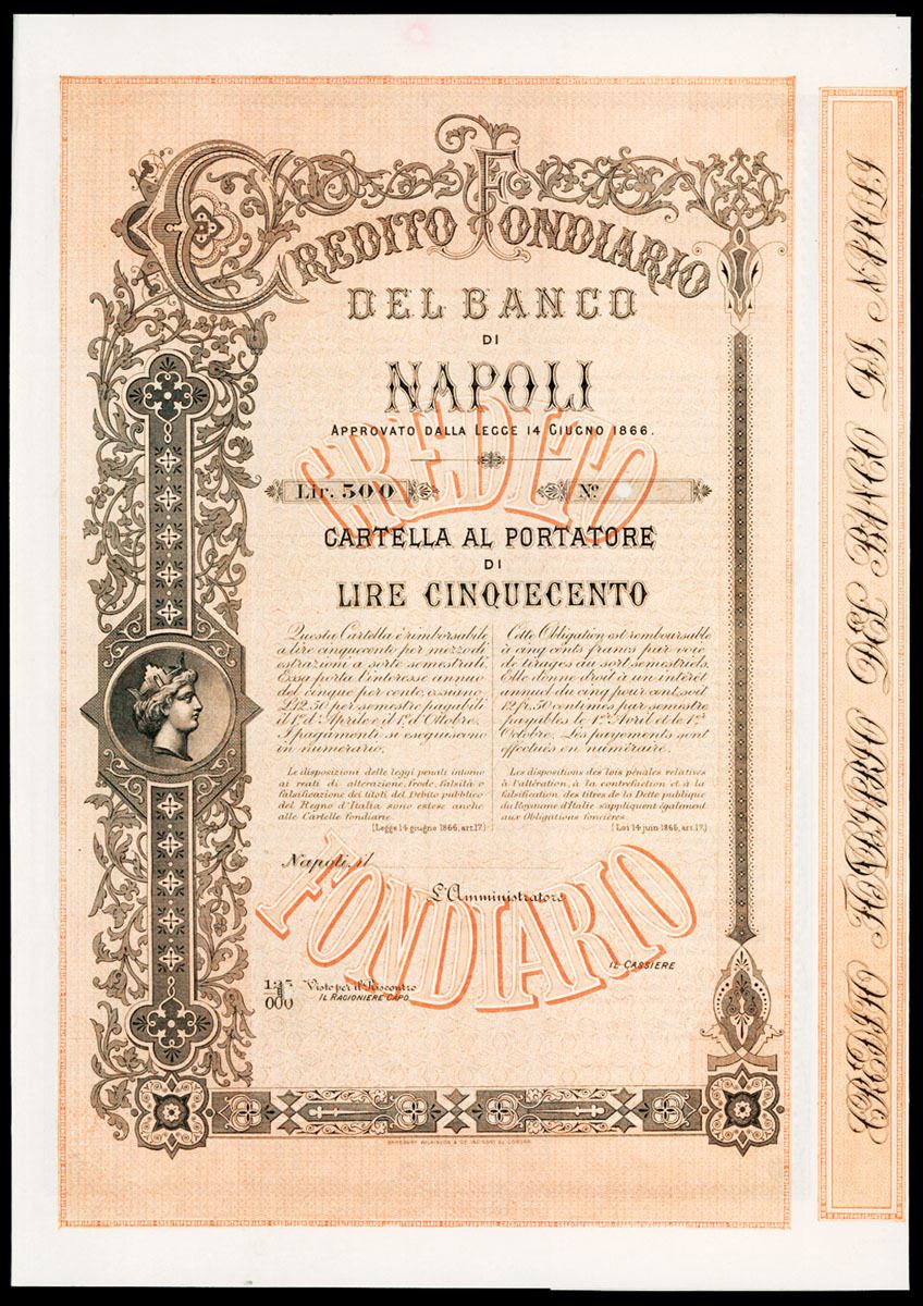 Italy, 18xx, (1866) 500 Lira, 5% Specimen Bond, Black on orange border and underprint, VF-XF condition, Bradbury Wilkinson & Co.