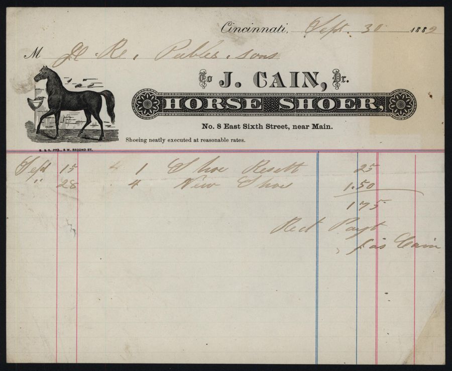 Cincinnati, 1889, Vignette of black horse top left corner, Fine condition.