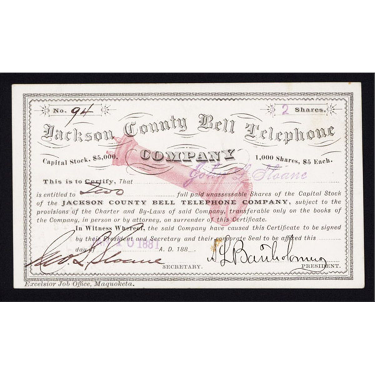 Iowa, Jackson County, 1881, 2 Shs., Red telephone underprint, Small format (4 “ x 2 “), XF.