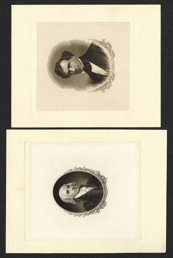 Portraits of James Madison and Franklin Pierce. On paper mounted on cards. 2 pieces. First with light former mounting spots on back.
