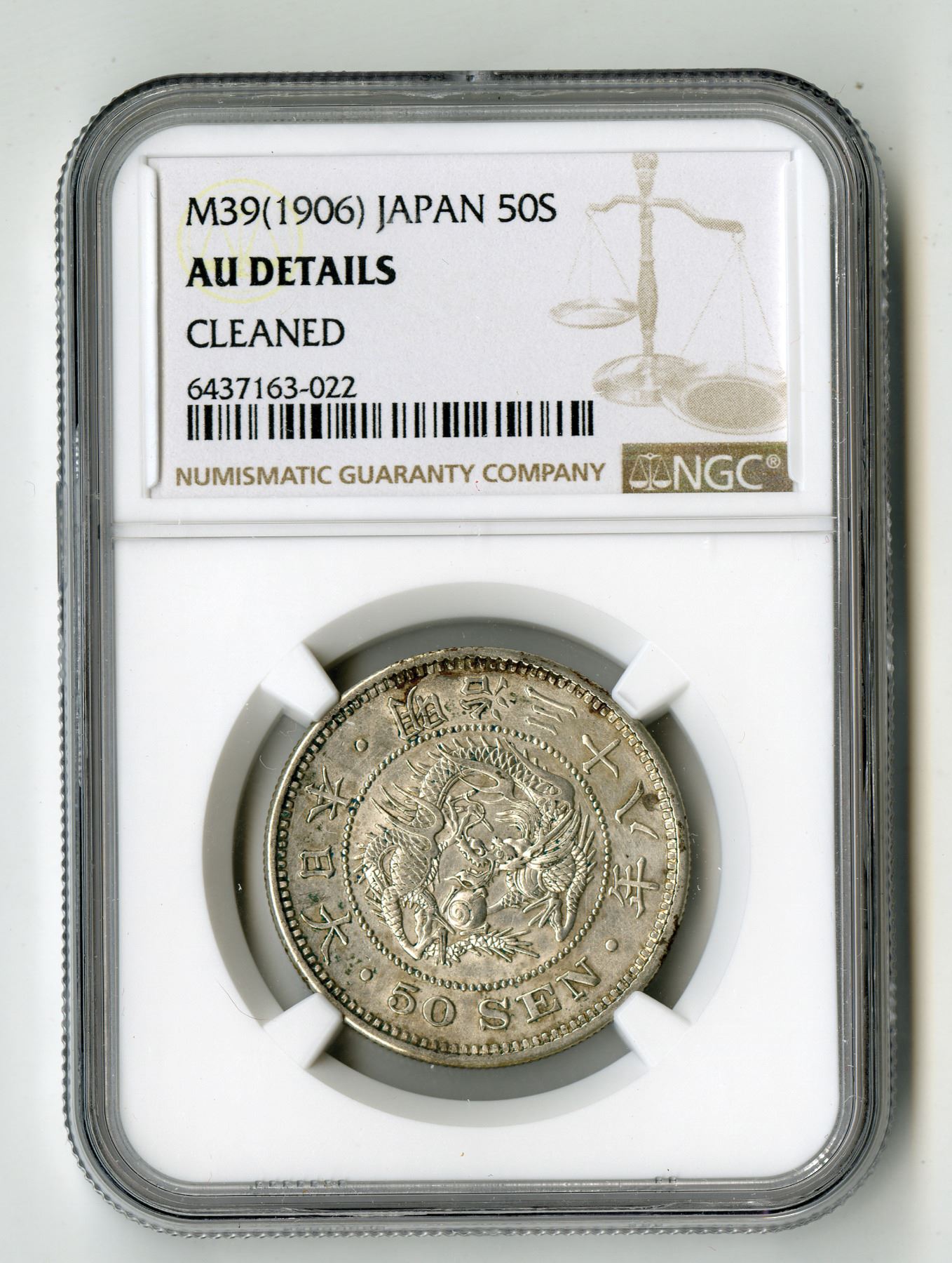 Japan. 50 Sen. M39 (1906), KM-31, NGC Graded AU Details with comment "cleaned".