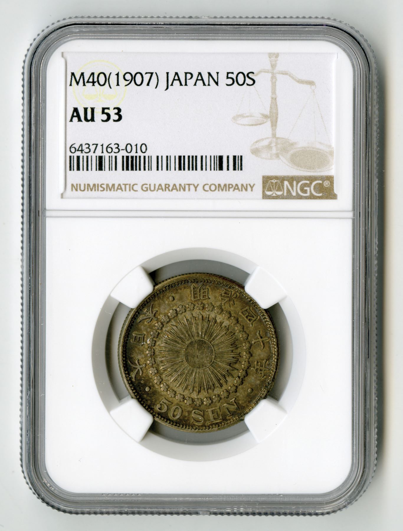 Japan. 50 Sen. M40 (1907), KM-31, NGC Graded AU 53.