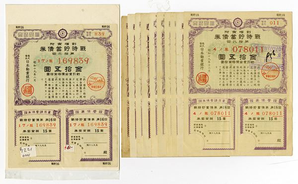 Japan, Wartime savings Bond, 1943 & 1944, 10 Yen Bond Series.