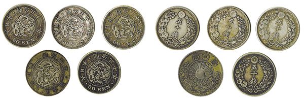 Yr.4(1871); Yr.30(1897); Yr.31(1898); Yr.32(1899); Yr.38(1905). All VF-EF with silver gray toning. [5]