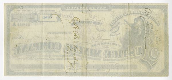 Gold Hill, Mining District, Storey County, Nevada. 6 25/100 Shares, I/U, Seated justice at left with ornate title, Series A, VF with small pin holes at left that are difficult to see. Rare stock certificate.