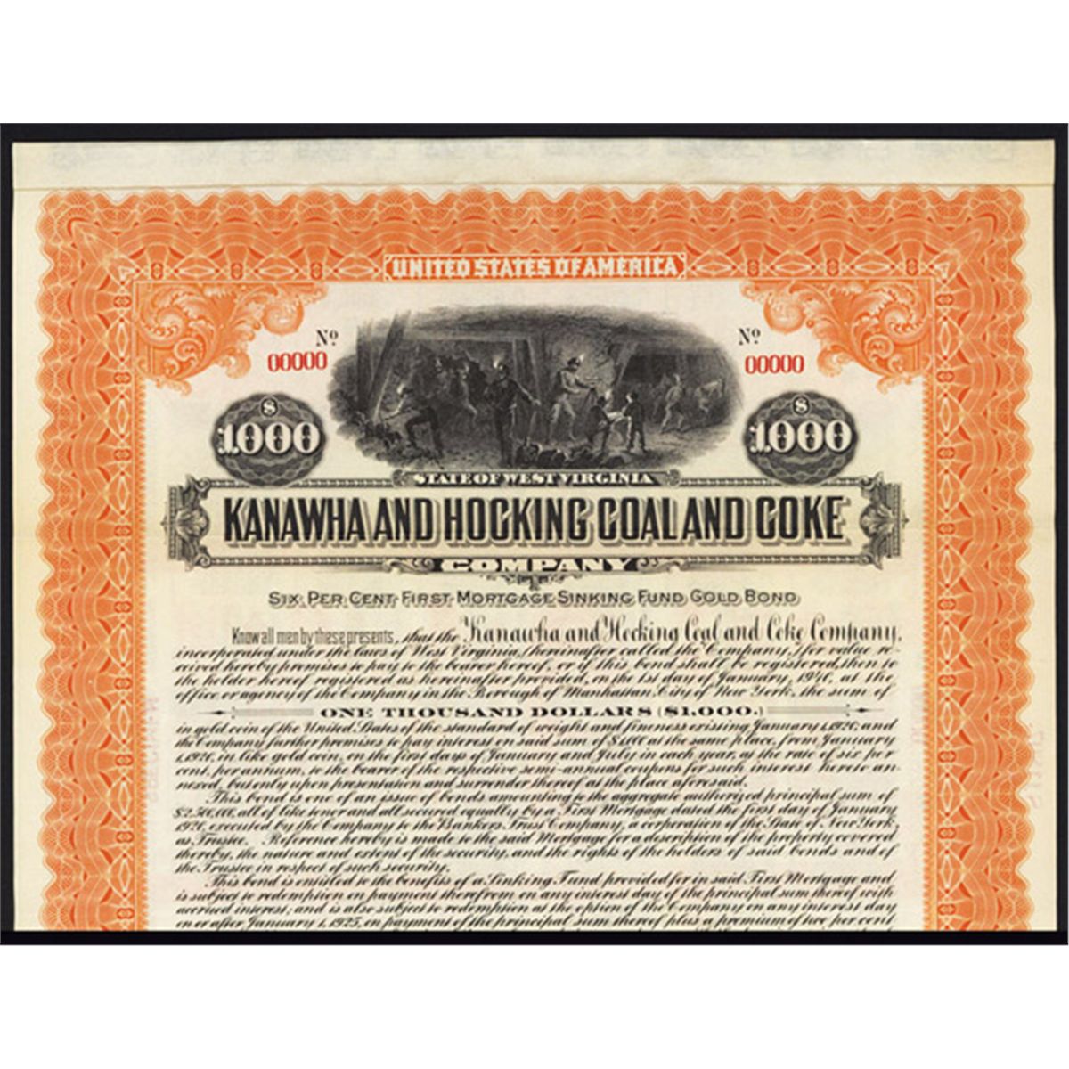 Virginia, 1920, $1000, Specimen bond, Miners, Orange, POC's, XF.