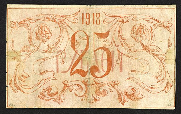 Semireche, Kazakhstan, Russia, 25 Rubles, P-S1122, Issued banknote, Indigo on light orange, Fine to VF, Rare note.