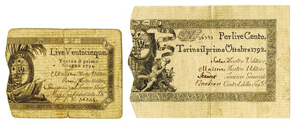 Italy, includes issued 100 Lire, 1 October 1792, P-S122, Fine with tape repair; and 25 Lire, P-S126a, Fine.