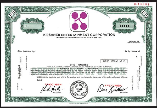 New York, ND, Specimen Stock, 100 Shares, Black on green border and underprint, Company logo top center, Red SPECIMEN overprints and POC's, VF-XF condition, SCBNC.