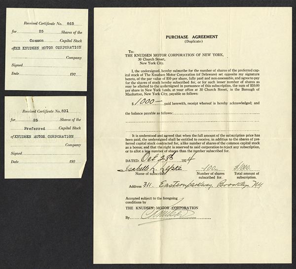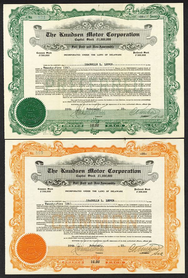 Delaware. Two Stock Certificates. Issued. Plus purchase agreement form issued from the same company to the same person, but for a different purchase than these certificates. Plus two certificate receipts. 5 pieces.