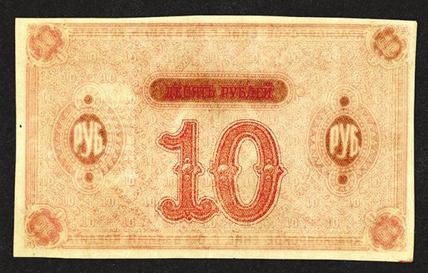 Russia. 10 Rubles. P-S969a. 1919 date at center, oak and palm in background. Without black text overprint. Without Series or Serial #. Uncirculated. Scarce. (The Silicon Valley Collection)