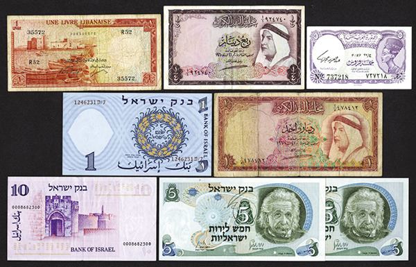 Kuwait (2); Lebanon (1), Egypt (1), Israel (4). Very Good, others Very Fine. 8 pieces.