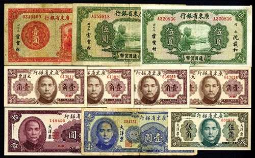 Lot of 10 notes, Includes 1936 Issues, $1; $5 and $10; 1949 Issues from 10 cents to 10 Yuan, condition varies between VG to CU. Highlights include 1936 ND, P-S2442 and P-S2443 (2), Attractive group.