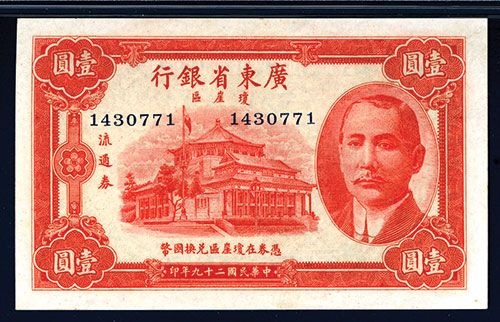 $1, P-S2449r (S/M#K56-80), Remainder Banknote, Red, SYS at right, memorial Building at Canton at center, back blue and green, PMG graded Choice Uncirculated 64, attractive note for issue with claims to Gem status.