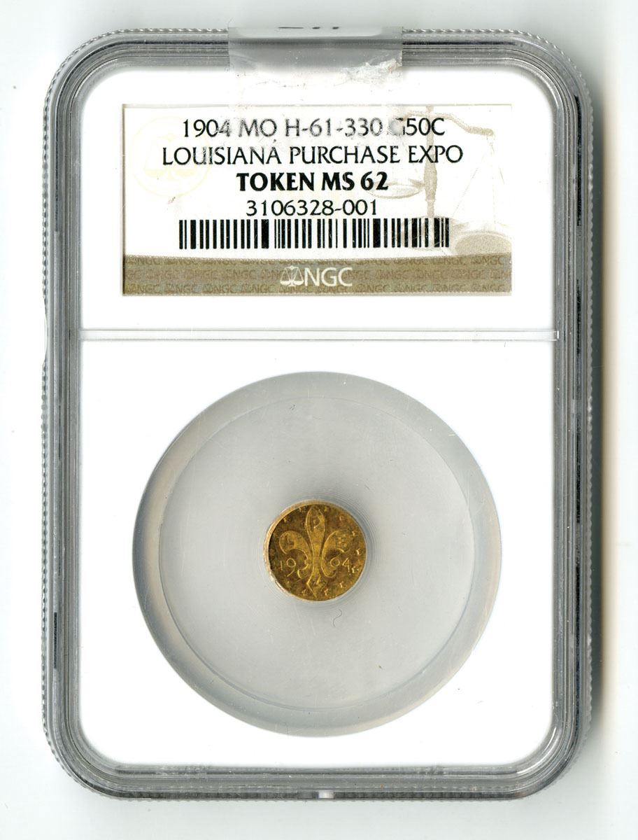 United States, 1904, Louisiana Purchase Exposition, HK-330 (So-Called Dollar); official exposition token; obverse of bust; rev. exposition legend; graded MS 62 (NGC).