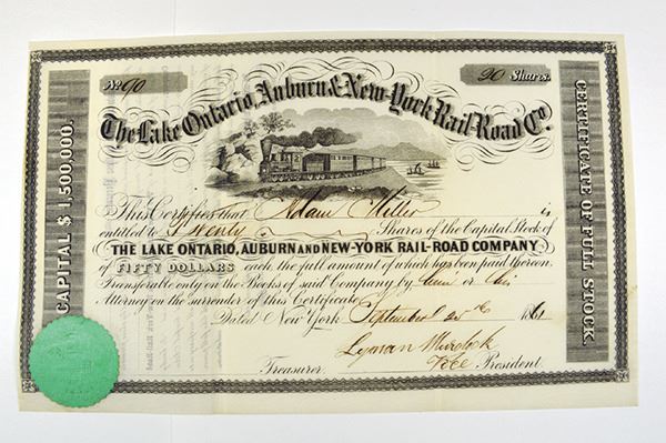 NY. 20 Shrs Stock Certificate. Issued. Uncancelled. Light ink burn. VF+