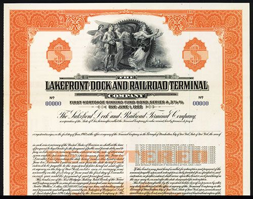 Ohio, 19xx, 3 7/8% 1st Mortgage Sinking Fund Bond Series A Specimen Bond, Black on orange border and underprint, Allegorical figures top center and winged wheel, POC's, VF-XF condition, ABNC.