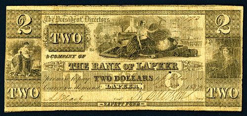 Lapeer, MI- The Bank of Lapeer, $2, Dec. 20, 1837.