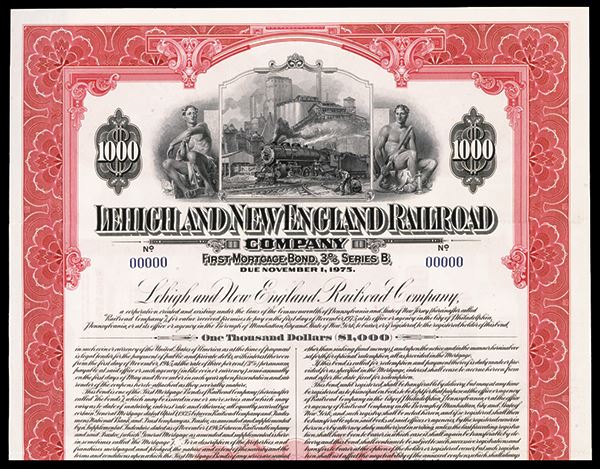 Pennsylvania. $1000 Coupon Bond Specimen. ABNC. Very Fine +.