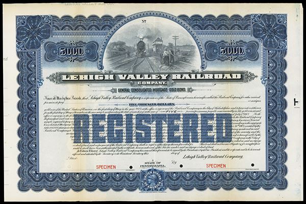 Pennsylvania. $5000 Registered Gold Bond Specimen. ABNC. Large format untrimmed page. Very Fine +