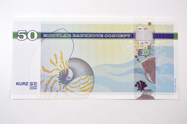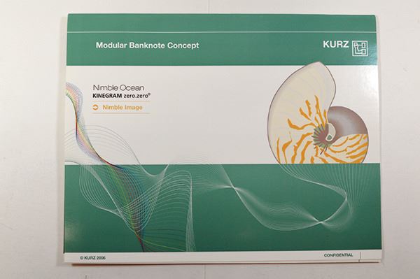 Germany. 4-page brochure with acetate overlay highlighting the Nimble Ocean Kinegram, zero technology. 2006. Uniface note. Choice Uncirculated.