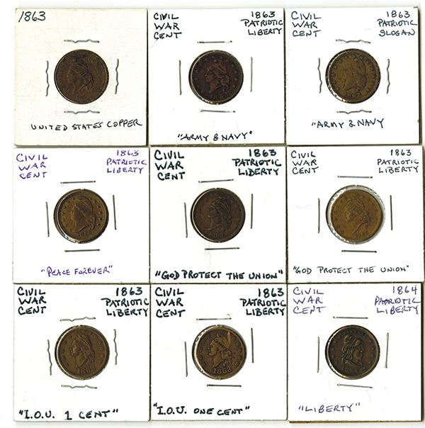 Reverses include: Shield, Eagle; Clasped hands. Generally Fine-Very Fine. 9 pieces.