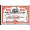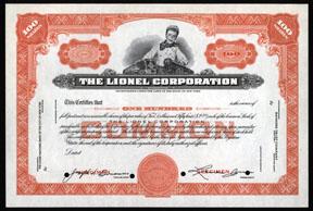 New York. 1960. 100 shares. Specimen stock certificate. Orange-red border of famous vignette of young boy with engineers hat playing with toy electric trains. XF to Uncirculated condition. SBNC. Rare specimen.