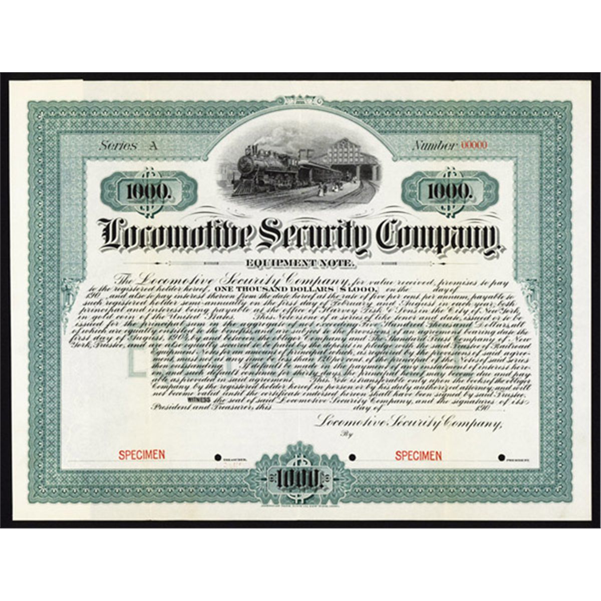 New York, 1904, $1000 bond, Specimen, Train, Green, ABNC, POC's, XF.