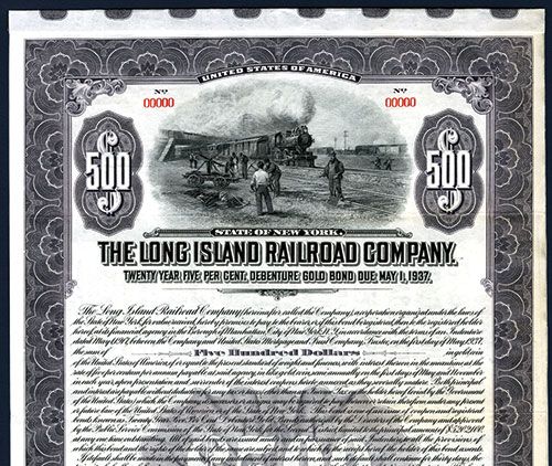 New York, 1917, $500, 20 Year 5% Debenture Gold Specimen Bond, Men working on the railway tracks top center, POC's, VF-XF condition, ABNC.