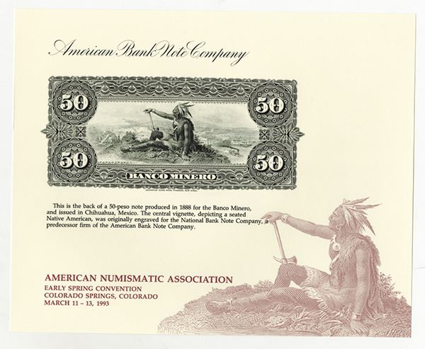 ANA March 1993, Colorado Springs, CO Convention Card, $50, Banco Minero with description printed on card with ABN certification on back. Mint condition, Lot of 25 pieces.
