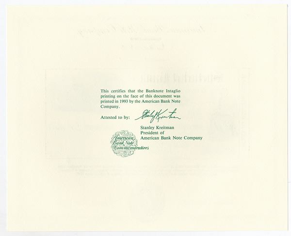 "Seasons Greetings" 1993 Convention Card, $Odd check of Shetucket Bank of Norwich, CT with description printed on card with ABN certification on back. Mint condition, Lot of 25 pieces.