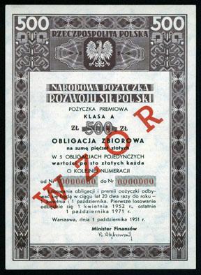 Lottery Bond Specimens, Rzeczpospolita Polska, Narodowa Pozyczka, Rozwoju Sil Polski, 1951 Issues.