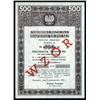 Warszawa. Lot of 2 different Lottery Certificates or Bonds. 100 Zt and 500 Zt. Both with red "Wzor" (specimen) and "0000000" serial number overprints. Arms of Poland on top. Back has text describing Lottery scheme. Both are in Uncirculated condition. Scarce Polish specimen duo.