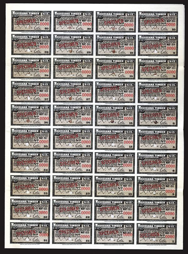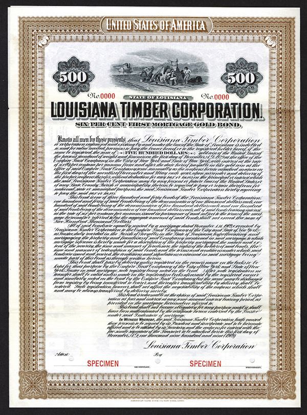 Louisiana. 1909. $500Six Per Cent First Mortgage Gold Bond, Tan frame, Riverboat, farming and tent vignette, ABNC