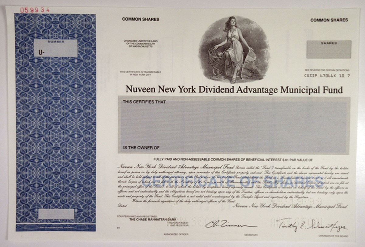 MA. Nuveen New York Dividend Advantage Municipal Fund Odd Shrs Stock Cert