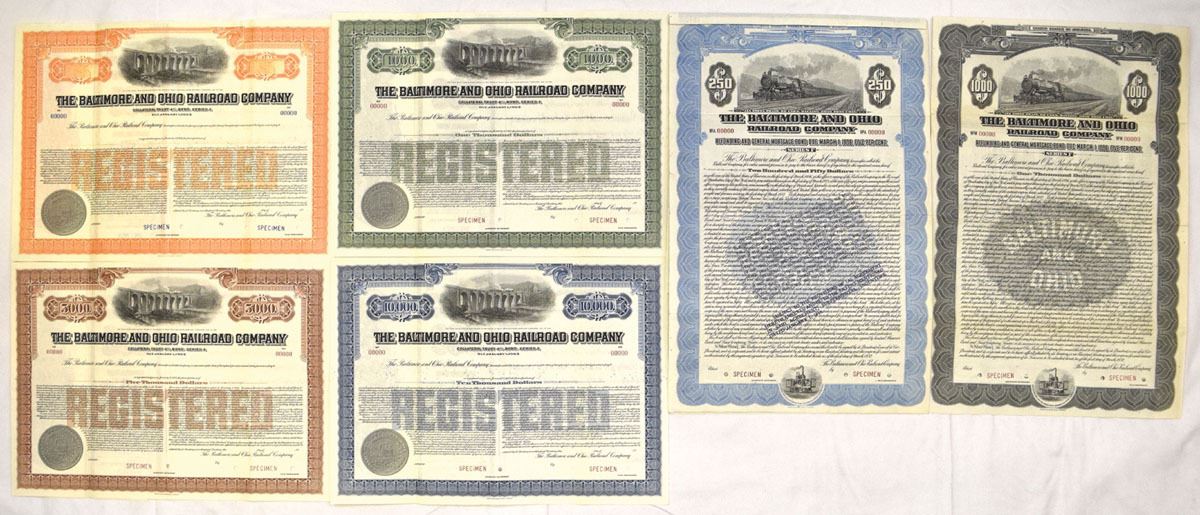 Maryland, 1932-ND(1946). Lot of 6 Specimen Bonds, Includes: 1932, $250 5% Coupon Bond; $1000 5% Coupon Bond; ND (1946), $- 4% Registered Bond; $1000 4% Registered Bond; $5000 4% Registered Bond; $10,000 4% Registered Bond. Bonds are all in various colors but all have Specimen overprints and POCs, Bonds range from AU to UNC condition. ABNC. (6). Sold "AS IS" no returns accepted.