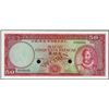 ND (ca.1958). P-47s Unlisted Trial Color Banknote. 50 Patacas. Red and m/c face and back (Issued color was in dark green). Red specimen overprint, "00000" serial numbers and POC.Choice uncirculated. BWC. Rare specimen banknote.