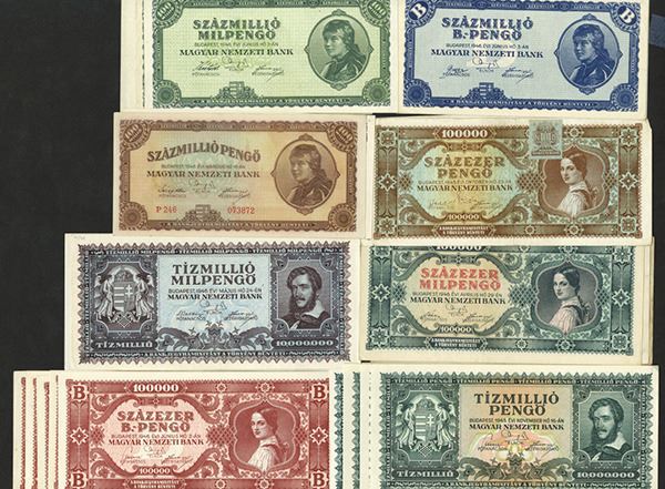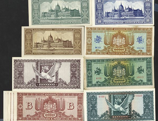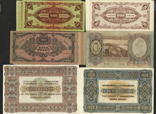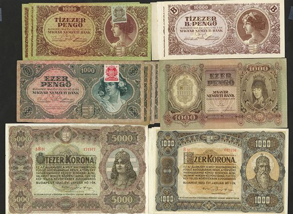 Hungary. Numerous inflation issues plus a group of early 1920 issues as well as P-112 (3); 116 (4); Many with pencil notations all but a few are Choice EF or better. Just over 80 pieces.