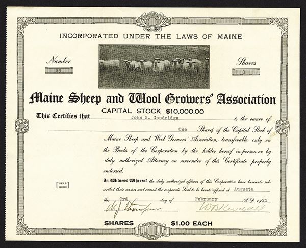 Augusta, Maine. One share, #25, photographic image of sheep, IU, EF.