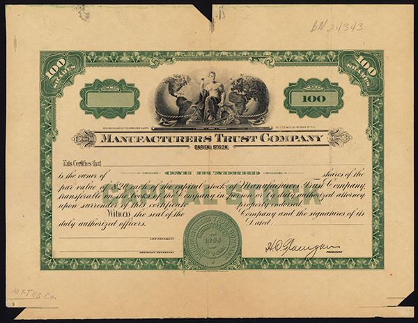 New York, ND (ca.1920-30's), 100 Shs., Proof, Man between two globes, Green on light brown paper, age toning, otherwise, XF.