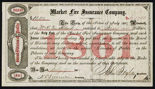 New York, 1861, $10, 6% Issued and Uncancelled Bond, #611780, Black print with red overprint, VF condition.