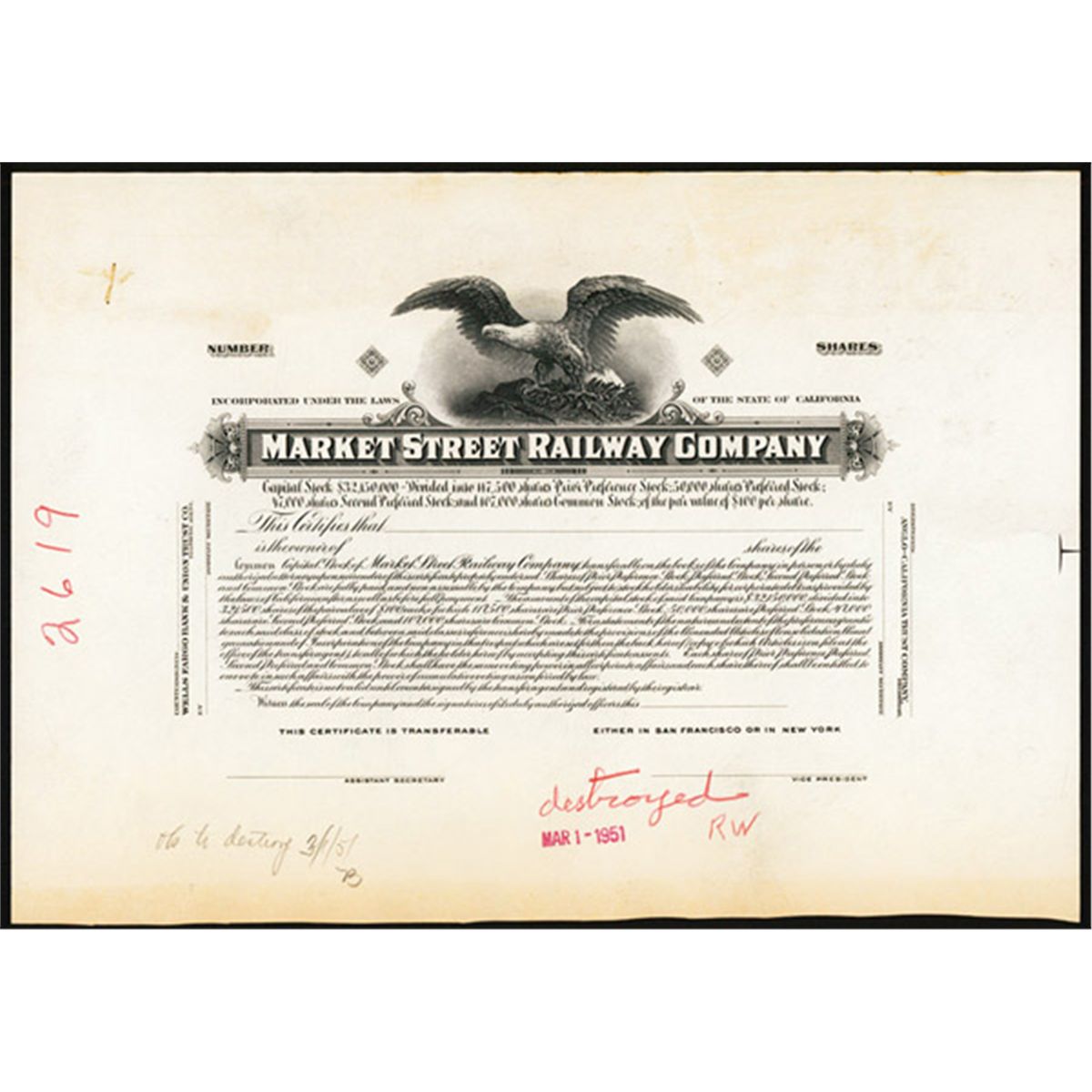 California, San Francisco, 1951, Shares, Proof of vignette and text on bond paper, Eagle, notations on front indicate that the plate has been destroyed, Some mounting stains on the back and a little age toning, otherwise XF.