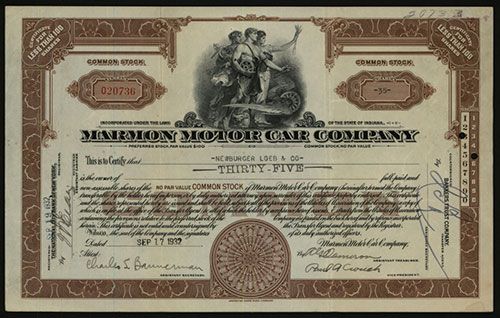 Indiana, 1932, I/U Stock, 35 Shares, #020736, Black on brown border and underprint, Fine condition, ABNC.