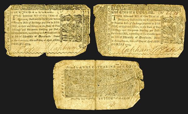 1/9 Dollar, 1/3 Dollar (2). SCWPM S970, S973. Printed by A. C. and F. Green. Fair to Good. 3 pieces. (The Harry L. Rinker Collection)