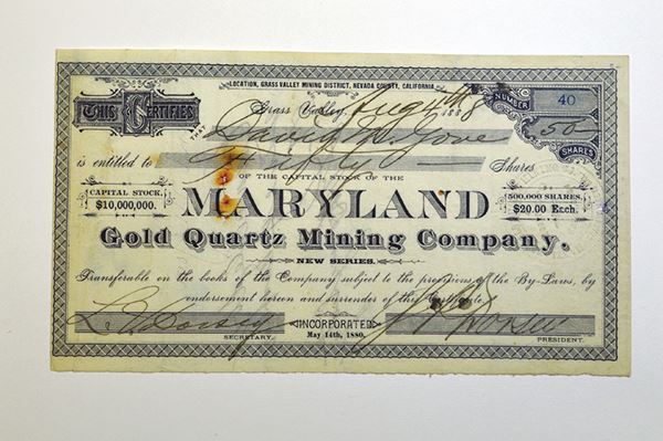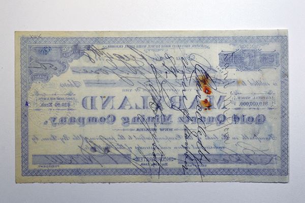 California. 50 Shrs Stock Certificate. I/U. Very Fine, a few rust stains.