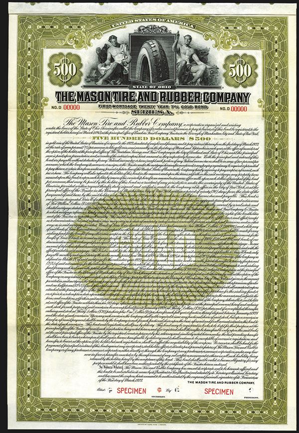 Ohio, 1923, $500, Specimen bond, Tire flanked by semi-nude males, Olive, #00000, ABNC, POC's, XF.